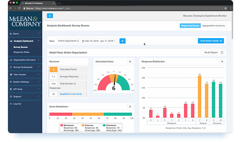 Looking to boost employee engagement? The McLean Employee Experience Monitor (EXM) gathers key feedback with a single question and up to five customizable ones. Use the dashboard to identify promoters, passives, or detractors and refine your strategy.